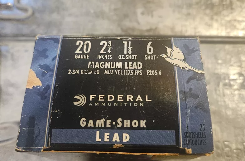 24/25 Federal Ammunition Game-Shok Lead 20 gauge hunting shells.