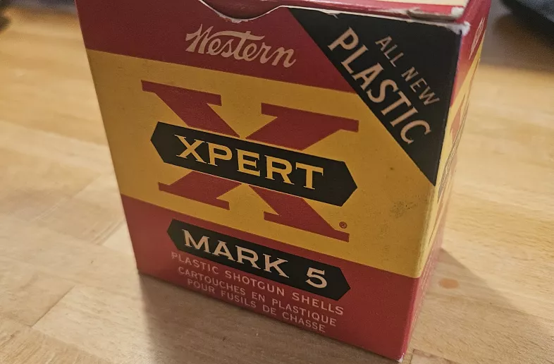 For sale: a vintage box of Western Xpert Mark 5 plastic shotgun shells.