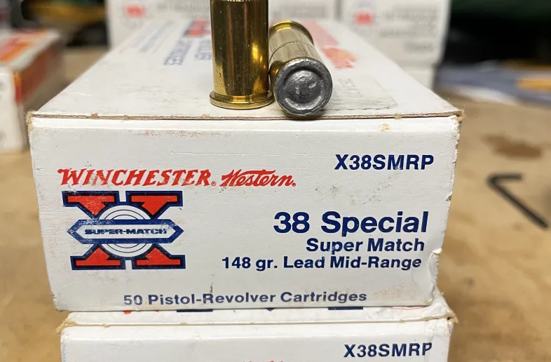 2x- Winchester super match 148gr. 1x - Winchester 158gr lead semi wad cutter 1x - Winchester 158gr lead round nose 1x - Samson +p 158gr JSP