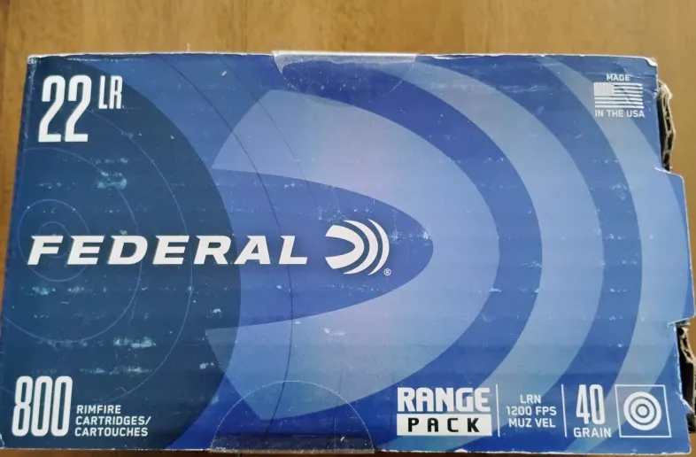 1 box of federal range pack 22lr 1200fps 40 gr. 800 cartridges