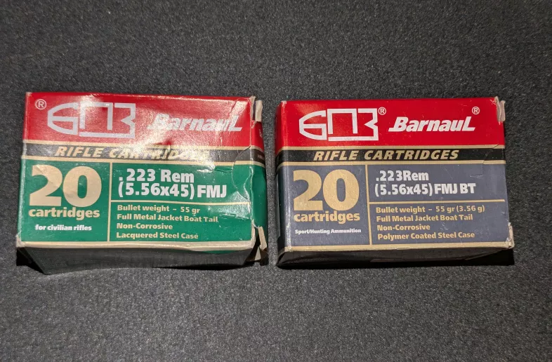 340 rounds (17 boxes) of Barnaul .223/5.56 55gr FMJ steel-cased ammo available. This lot contains a mix of polymer and lacquer coating. Great, budget-friendly choice for the range. PAL mandatory, local pickup in Newmarket.