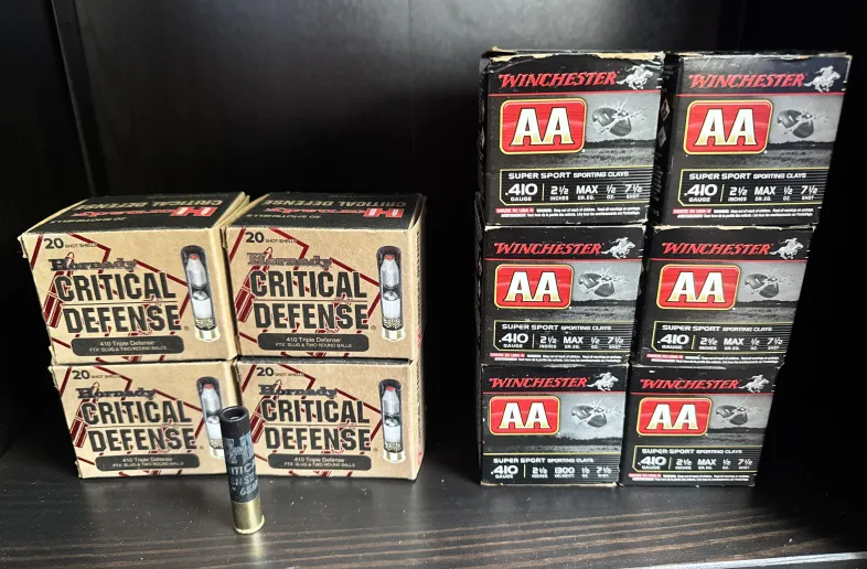I have 6 boxes of Winchester AA 410 shot shells. 25 Rds per box. Info is in the picture.