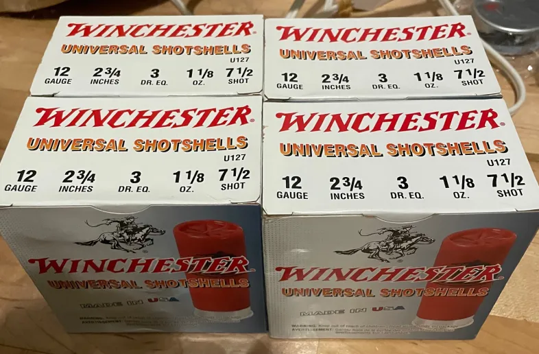 Winchester Universal Target loads, 2 3/4", #7.5, 1-1/8oz load. 4 boxes @ $14 each.