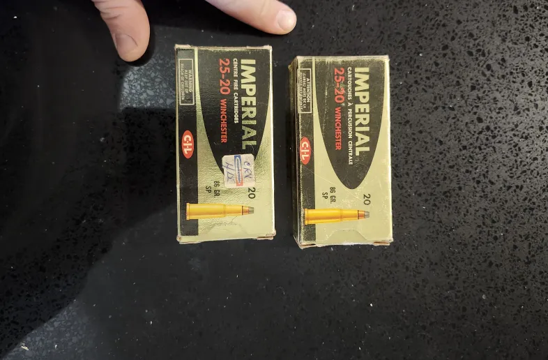 2 boxes of mismatched 25-20 ammo left to me that I have no use for. Some rounds look original, some look like possible reloads and therefore cannot guarantee function or reliability. Can ship on buyers dime, would prefer local sale, can meet within reason. 150 obo