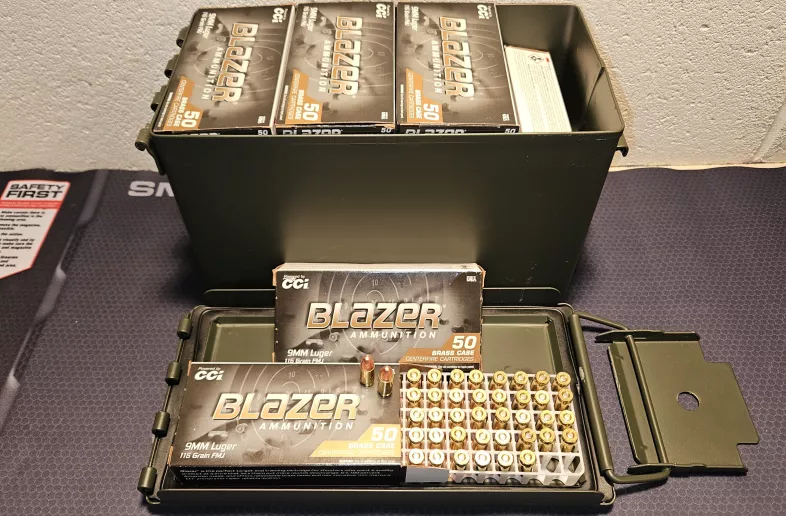 950 rounds of standard 9mm, 19 boxes of 50 rounds.