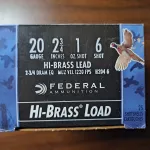 - Federal Hi-Brass Load 20 ga 2 3/4 1oz #6 shot