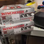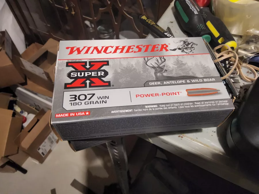 I have two full boxes of .307 Winchester ammo. 180 grain. These cost me $85 plus tax each, so almost $200 for them. Asking $150 for both boxes, cash, local pick up. Ottawa area.