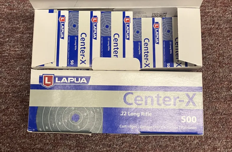 Lapua Center-X 22LR 725.00 Posted: Mar 17, 2026 Address: Wingham, ON, N0g2w0 Category Ammunition Live Ammo Bullet Diameter .22 cal. / 5.56 mm 1900 rounds , just shy of 4 bricks All same Lot# No shipping Visits: 25 Read our Online Safety Tips