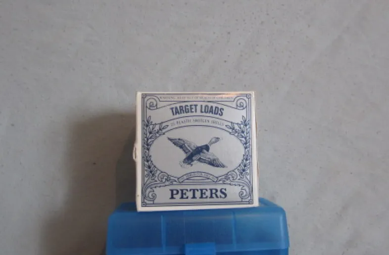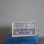 PETERS BLUE MAGIC TARGET LOADS 12ga. 7 1/2 shot, 1 1/8 OZ. Boxes are in fair condition. Rounds are all clean and bright. 3 boxes of 25 rounds each. Thirty dollars/box.