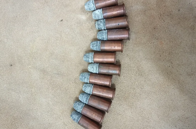 Eleven rounds of .44RF made my Winchester. Intact cartridges in very good condition. No polishing or signs of tampering.