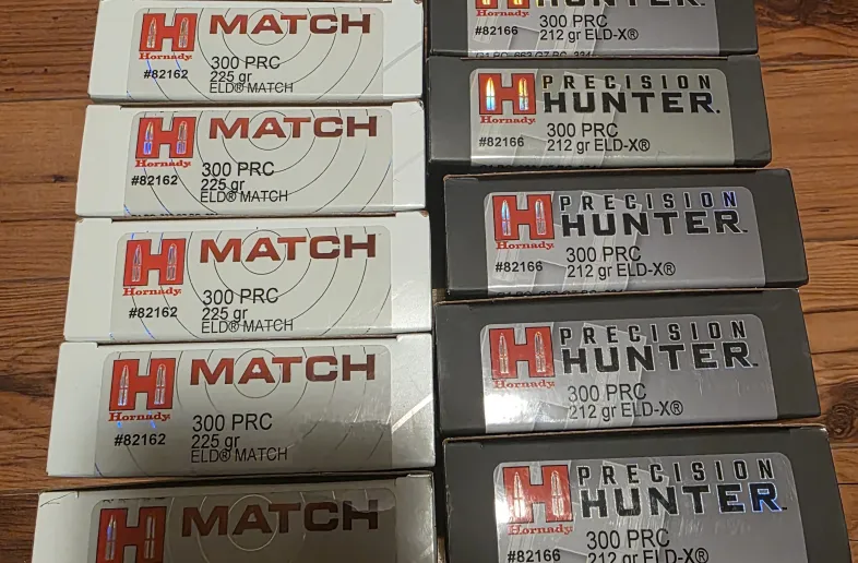 Selling a bulk amount of 300 prc ammo. 140 rounds of hornadt 225 match, and 98 rounds of 215 eldx. $850 for all or if you want to buy individual boxes its $80 a box. No trades. Will also include 40 brass for anyone buying all the ammo.