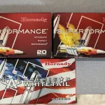 PENDING PENDING REDUCED 3 boxes for trade/swap or forsale for $175 for all 3 boxes. All brand new, sold the rifle so no need for this ammo any more. There is one box of Hornady American Whitetail and 2 boxes of Hornady Superformance. Right now at Cabelas these 3 retail at $264.97 plus taxes. Pick all 3 up for only $175 or let’s look at some trades for other ammo etc. must have valid pal and meet in person .