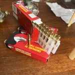 Two and a half boxes of American Eagle .223 50gr flat base Hollow Point cartridges.