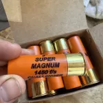 3” 1 1/4 oz 1450fps, orange hulls. Very clean ammo! Selling for $250/case, pick up in Warman, no shipping or trades. Price is firm as I paid $300+tax per case for these.