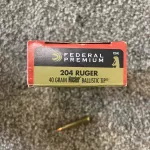One full box of .204 ruger rounds. 40 grain nosler ballistic tip