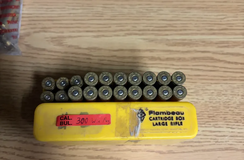 15 rounds of Winchester 300 Win Mag 180 grain soft point (with five fired casings included)