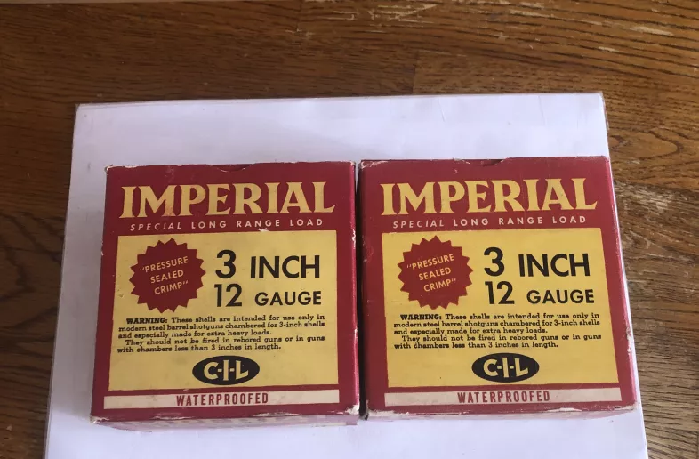 (2)(Vintage Boxes) Imperial (CIL) Special Long Range Load Shotgun Shells. 3 Inch,12 Gauge (RARE BOX)