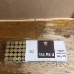 Fiocchi Webley 455 MKll Cartridges (262 Grain, GZN, (Lead Round Nose)