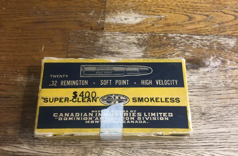 (Vintage) (Dominion) (CIL) Super-Clean .32 Remington Cartridges. Smokeless, High Velocity, 170 Grain, Soft Point.