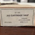 Selling off some extra surplus .303 ammo from my collection. PPU7303 made in Yugoslavia. Its untested but clean, powder can be heard loose inside the cartridge aswell. This stuff is the MK8z which is a bit of a hotter load according to my research and is NOT suited to SMLEs, but can be used in later lee enfields such as the no. 4, jungle carbine, etc. Its also suitable in p14 rifles as well. 5 boxes available at 30 dollars a box, can do a little better on the price if you take it all.