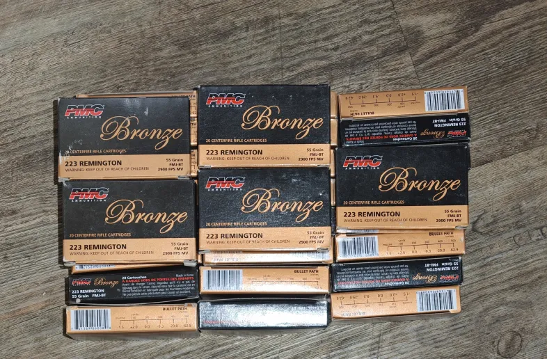 I have 31 boxes of high-quality, unused PMC 223 rem ammunition for sale at $14 per box.
