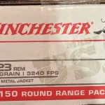- Winchester .223 Rem 55 gr FMJ — 150 rounds (factory 150-round range pack, unopened)