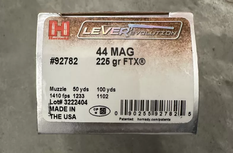 I have 15 or 20 boxes of 44 Mag 225 gr FTX Hornady Leverevolution available.