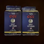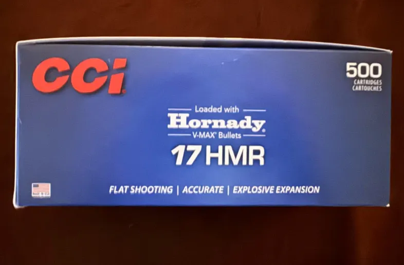 1. CCI 17 HMR, 17 grain Hornady V-max polymer tip, 2550 feet per second, $240 per 500 round box.