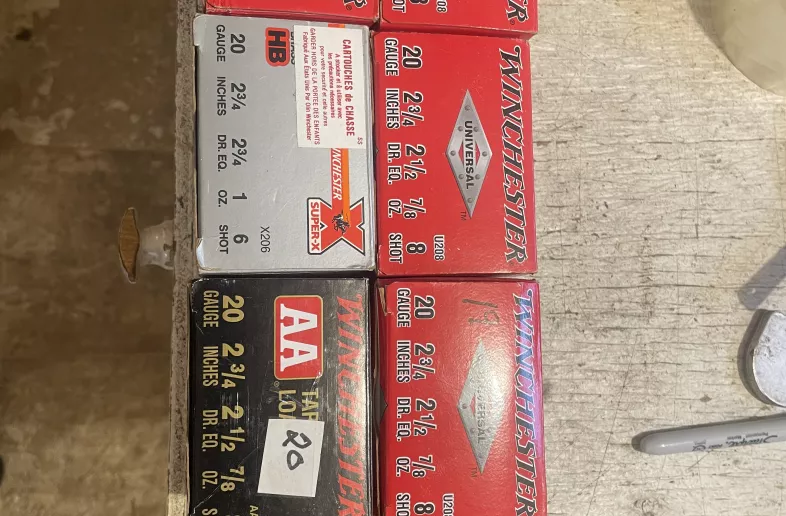 to sell 20 gauge shotgun shells see picture for details all boxes are full except 2 boxes marked with the amount 120$ picked up at my door must have pal no meeting or delivery check my ads Thanks for your time (IF ADS NOT MARKED SOLD ITS AVAILABLE)