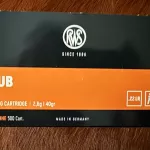 7. RWS club, .22LR competition training cartridge, 40 grain, 1082 feet per second, made in Germany, $110 per 500 round brick.