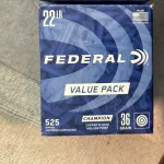 2. Federal Champion .22LR, 525 round box, 36 grain, copper plated hollow point, 1260 feet per second at muzzle. $50 per 525 round pack.