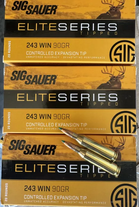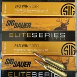 2. Sig Sauer Elite Hunter, 243Win, 90 grain, Sierra Gameking tipped, 40 bucks per 20 round box.