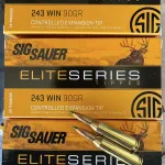 3. Sig Sauer Elite Series Tipped, 243 Win, 90 grain, Controlled Expansion Tip, $85 for 2 boxes(40 rounds).