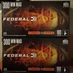 6. Federal Fusion, 300 Win Mag, 165 grain bonded soft point. $ 60 per box of 20 rounds.