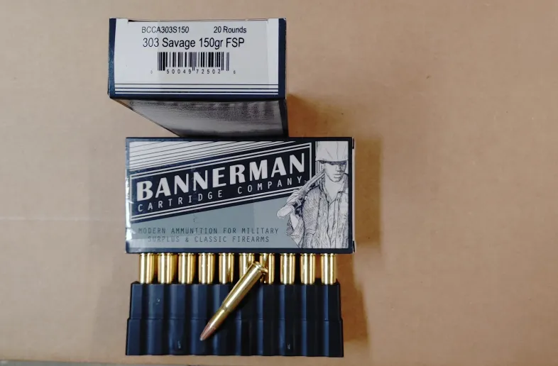 Selling 2 boxes of new production factory Bannerman 303 Savage ammo as one lot for $180 ($90 per box).