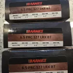 3 boxes of new 127gr LRX Barnes for 6.5PRC.