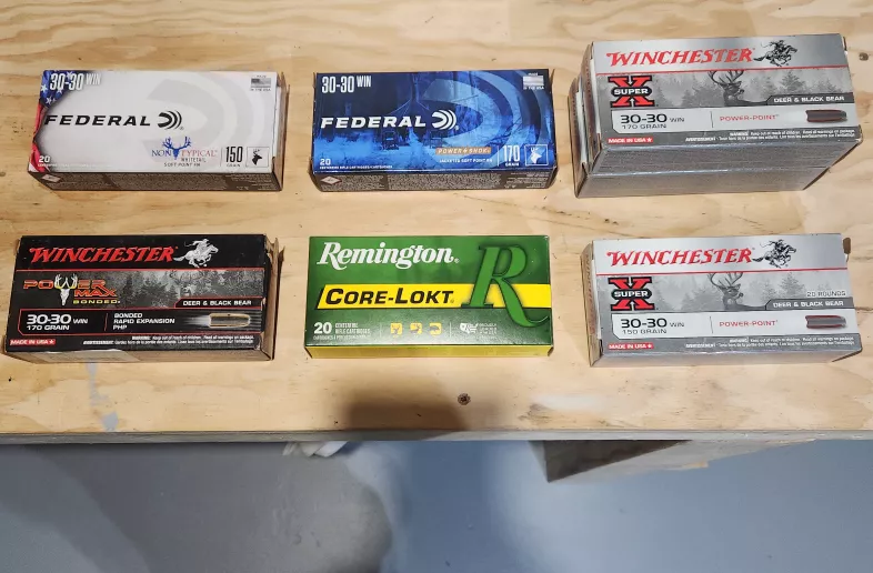 Selling 7 boxes of 30-30 ammo, one box of Winchester power point 170 grains is missing one round everything else is there.