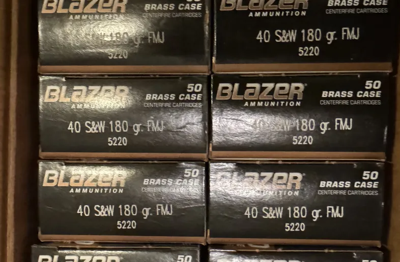 CCI Blazer 40 S&W, brass cased, 180 Grain Full Metal Jacket, $27 per 50 round box.