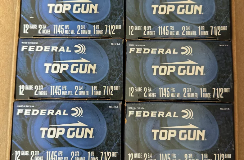 Federal Top Gun, 12 Gauge Target Load, 2-3/4 inch, 1-1/8 oz, #7.5, 1145 feet per second, $55 bucks per 100 rounds.
