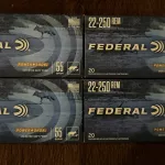 2. Federal Power Shok, 22-250, 55 grain Jacketed soft point, $37.5 per 20 round box