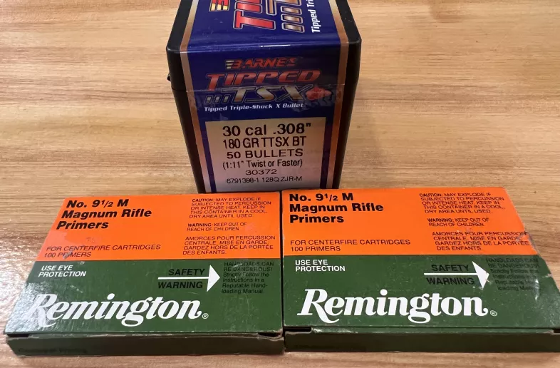 Barnes TTSX .308 180g Bullets + Remington 9.5 M Magnum Rifle Primers