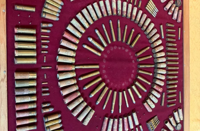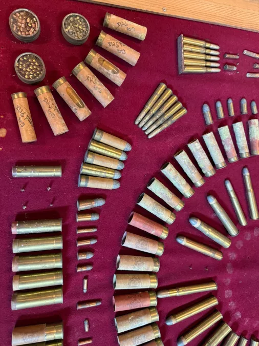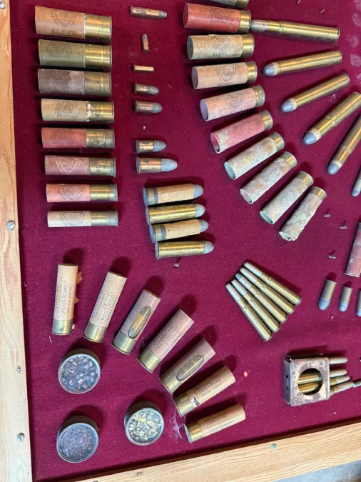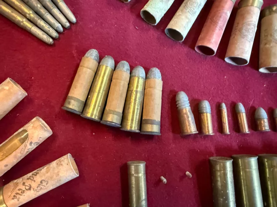 Large Vintage Ammunition Display 40”X40” with extremely rare ammunition. Few items missing from long term storage, a gentle cleaning may be necessary if the storage patina is not for you. Sorry no shipping Valid PAL required.