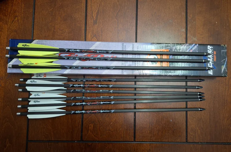Have for sale 9 brand new Excalibur Firebolts, I'm upgrading to custom arrows, asking $75 for 9 brand new Excalibur arrows, please contact for more information