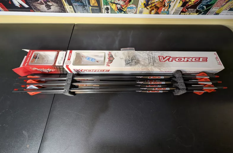 NIB - 12 uncut arrows - Victory - VForce - Spine 300 - Straightness 0.001 , Weight 9.9 grams/inch. Blazer vanes, nocks and loose inserts. See images for more info.