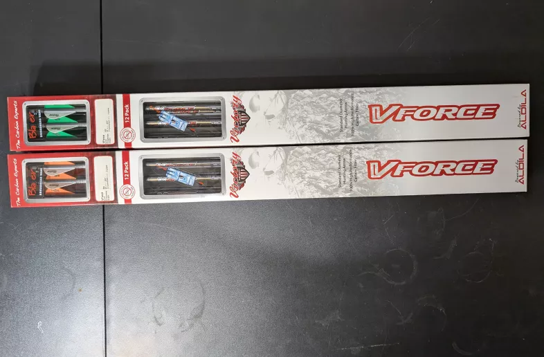 NIB - 12 uncut arrows - Victory - VForce - Spine 500 - Straightness 0.003 ,Weight 7.7 grains/inch.