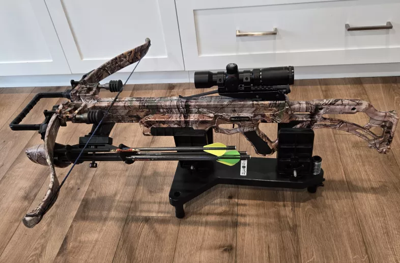 x bow is in like new condition. Comes with dozen bolts,tact zone scope, new string,locking aid,air brakes installed and a larger size foot stirrup for winter boots. Wanting to sell $700 obo