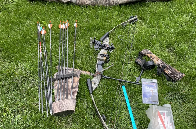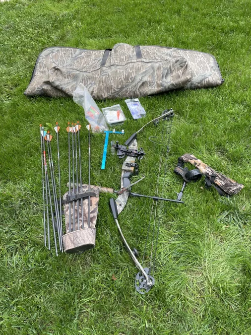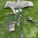 PSE compound bow LEFT HANDED.Comes with a case,arrows,broad heads,trigger release,arm guard,other accessories.Everything you need to target shoot or hunt