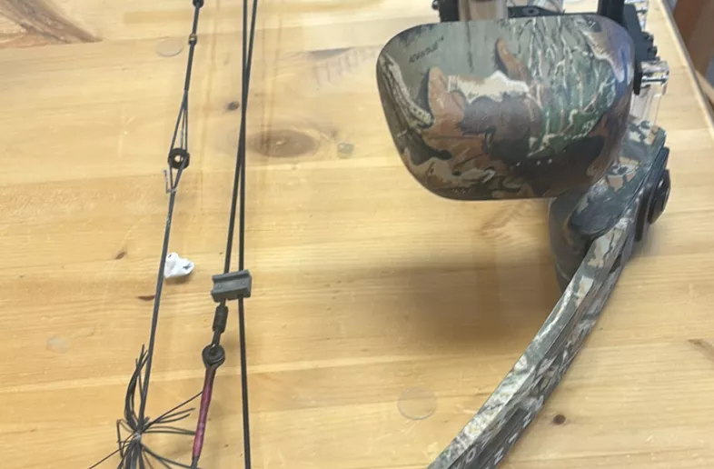 basic compound bow, I don’t think anything is wrong with it I was going to get into bow hunting and just never got to it and a I don’t know the weight of the string