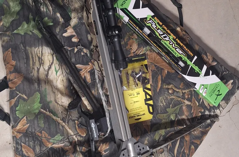 Exocet in excellent condition. Includes drop zone scope, cocking aid, padded case, new box of 6 bolts, 4 package of brand new expanding 100 gr. broadheads plus new string. Interested in possible trade plus adding cash on my side for a left hand 243 Savage.