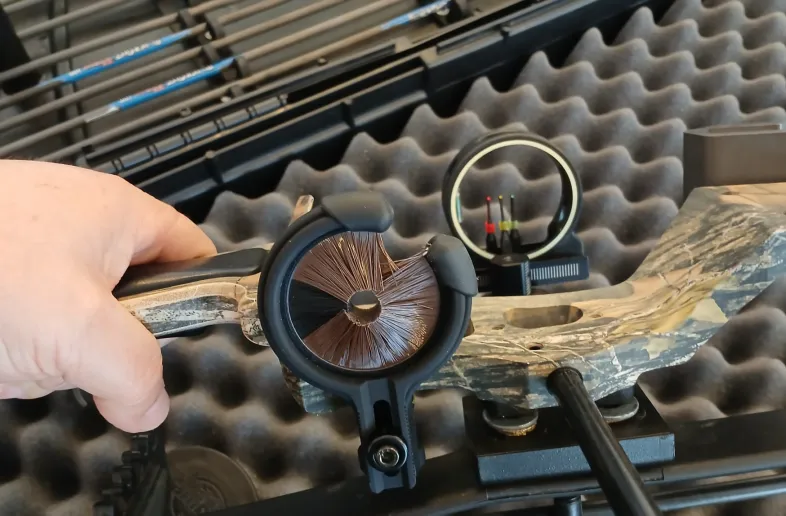 Bow has a three pin sight, whisker quick-shot arrow rest.